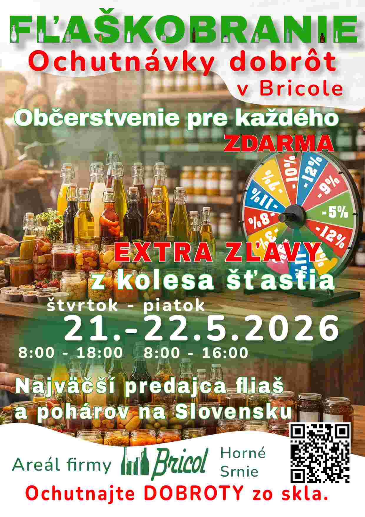 Tešíme sa na Vás počas Fľaškobrania 21.-22.5.2026 v predajni Bricol v Hornom Srní.
