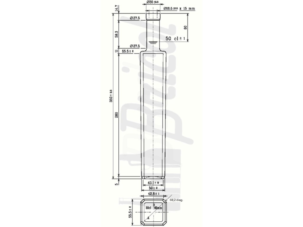 Fľaša Angelika - 0.50 bezfarebná + logo Hescon + obtisk slivky 3 s listkom chránená