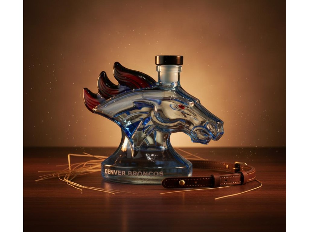 Fľaša Kôň s Vlajúcou Hrivou - 0.30 bezfarebná + nápis DENVER BRONCOS