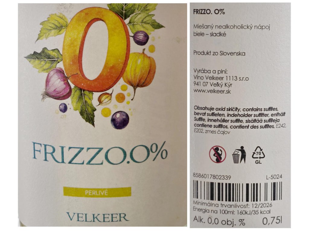Miešaný nealkoholický nápoj FRIZZO 0% 0.75 l - sladké - Velkeer