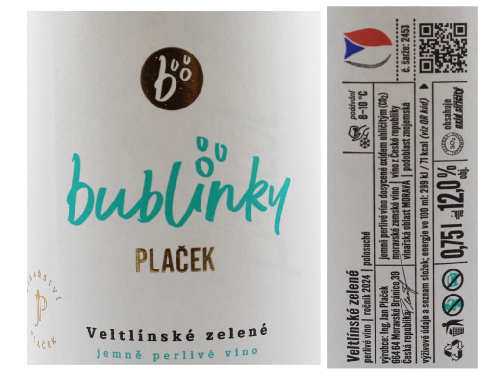 Perlivé víno Bublinky 0.75l - MZV polosuché - Ing.Jan Plaček