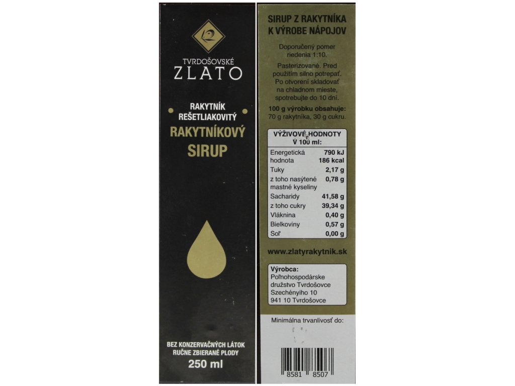 Rakytníkový sirup 0.25 l - PD TVRDOŠOVCE