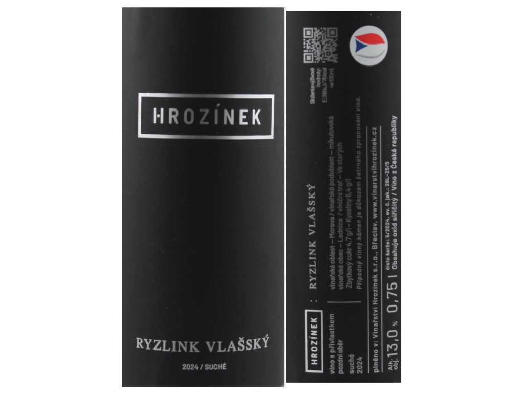 Víno Ryzlink vlašský 0,75l - neskorý zber suché - Hrozínek