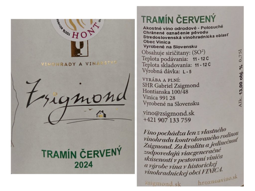 Víno Tramín červený 0.75 l - polosuché akostné - SHR Gabriel Zsigmond