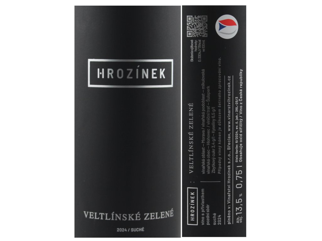 Víno Veltlínské zelené 0,75l - neskorý zber suché - Hrozínek