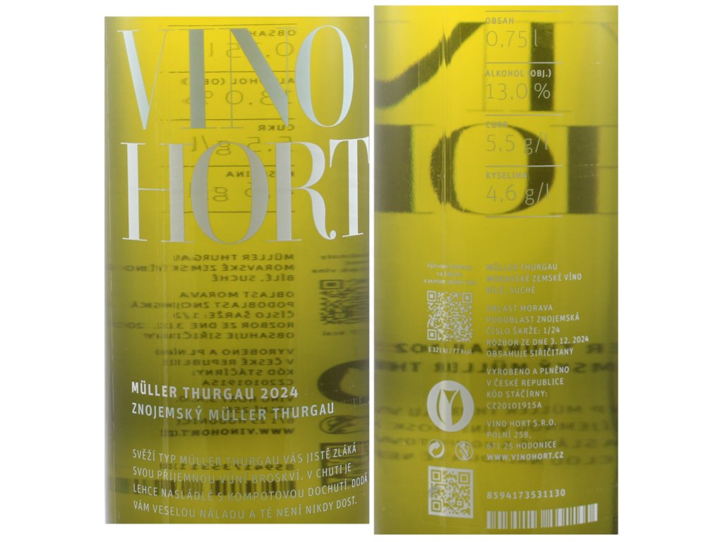 Víno Znojemský Müller Thurgau 0.75 l - moravské zemské suché - VINO HORT